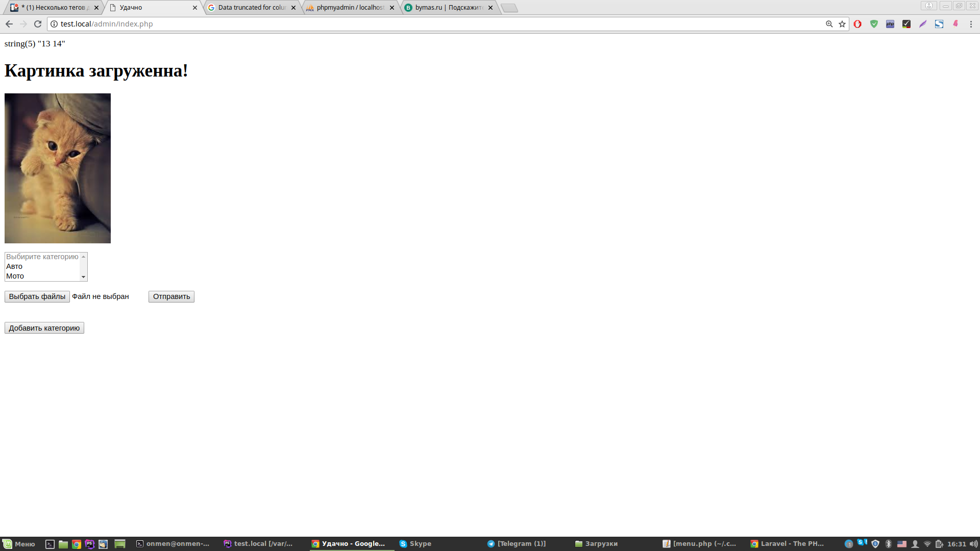PhpStorm , и $row['id'] выведет айди картинки, а не категории, запрос перечитай)