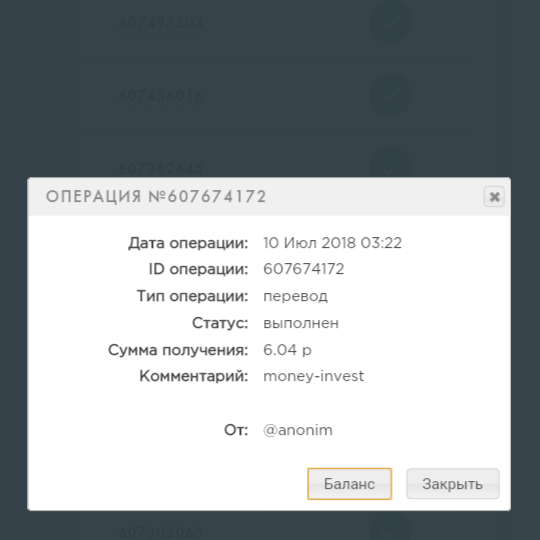 Заметьте я не пополнял но снимаю