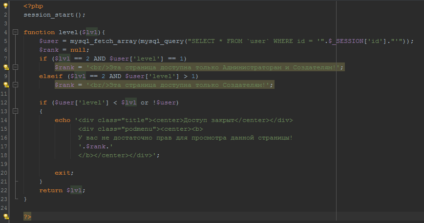 PhpStorm , да я этот файл подключаю в файл админки и вызываю там функцию level(2);