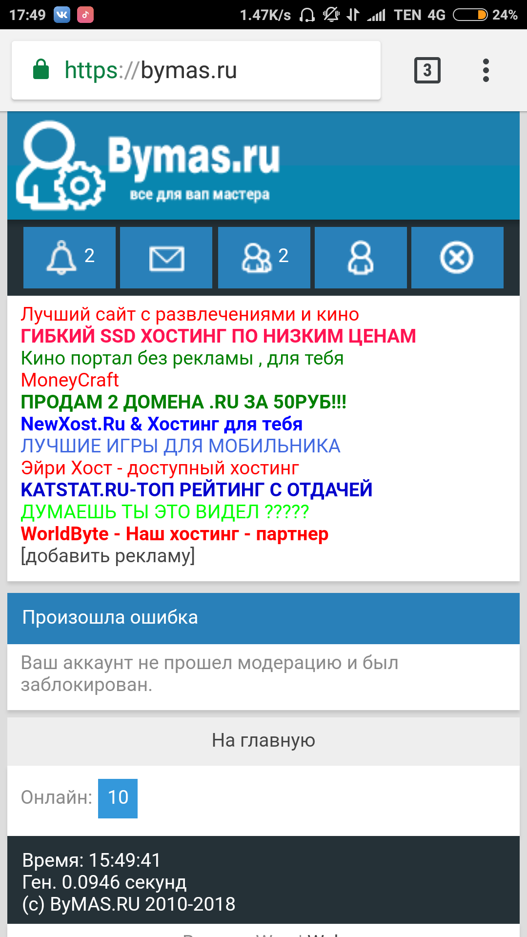 То, что заблокировали мой аккаунт :-)