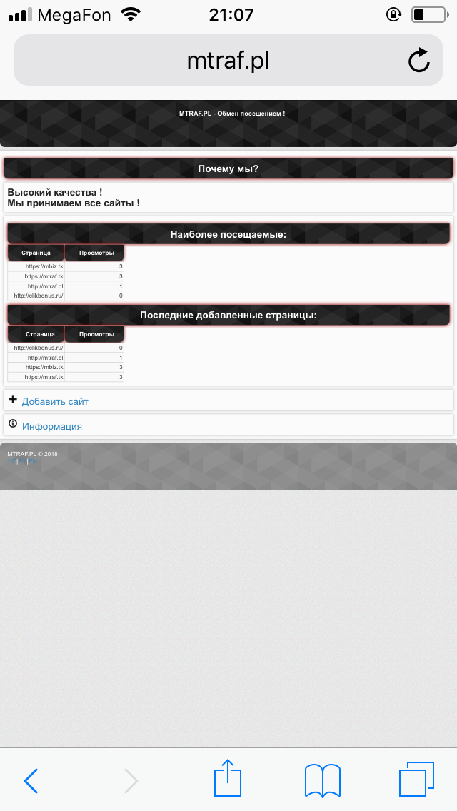 Всем привет ! Мой новый адаптивный под любой гаджет обменник посещением открыто ! Мы принимаем абсолютно все сайты и реф сылки ! Без ограничений ! Вот сам сайт : MTRAF.PL