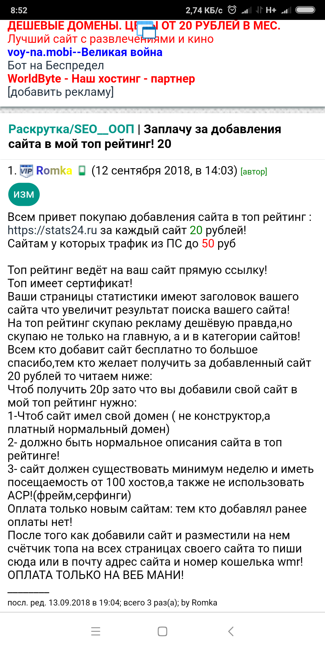 Раскрутка/SEO__ООП | Заплачу за добавления сайта 50 руб!