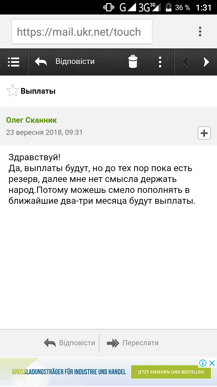 Привет.Сразу прошу не разводить балаган.Не желаете - не пользуйтесь, не регистрируйтесь. Итак, проверяют проект на выплату.Советуют сейчас собирать прибыль, ибо проект больше месяца или двух не простоит.Все чисто держится на деньгах вложивших.Ваше вложение (а оно абсолютно не обязательное) окупается в течении одной недели. Владелец держал уже подобные проекты, они работали в несколько сезонов. Я даю свою реферальную ссылку , без какой либо рекламы и т.д, просто укороченная: ➡️Перейти⬅️ Если вы наслышаны о разводах, то я абсолютно с вами согласен.Но есть одно но: всегда можно поднять бабло в самом начале проекта и в первый месяц его существования. Жаль конечно что платят на паер, но все же что есть, то есть:) Те, кто говорят ,что это копейки, тоже соглашусь, но копейки без вложений, а с вашими инвестициями перерастают в доход. Всем удачи и спасибо за внимание!