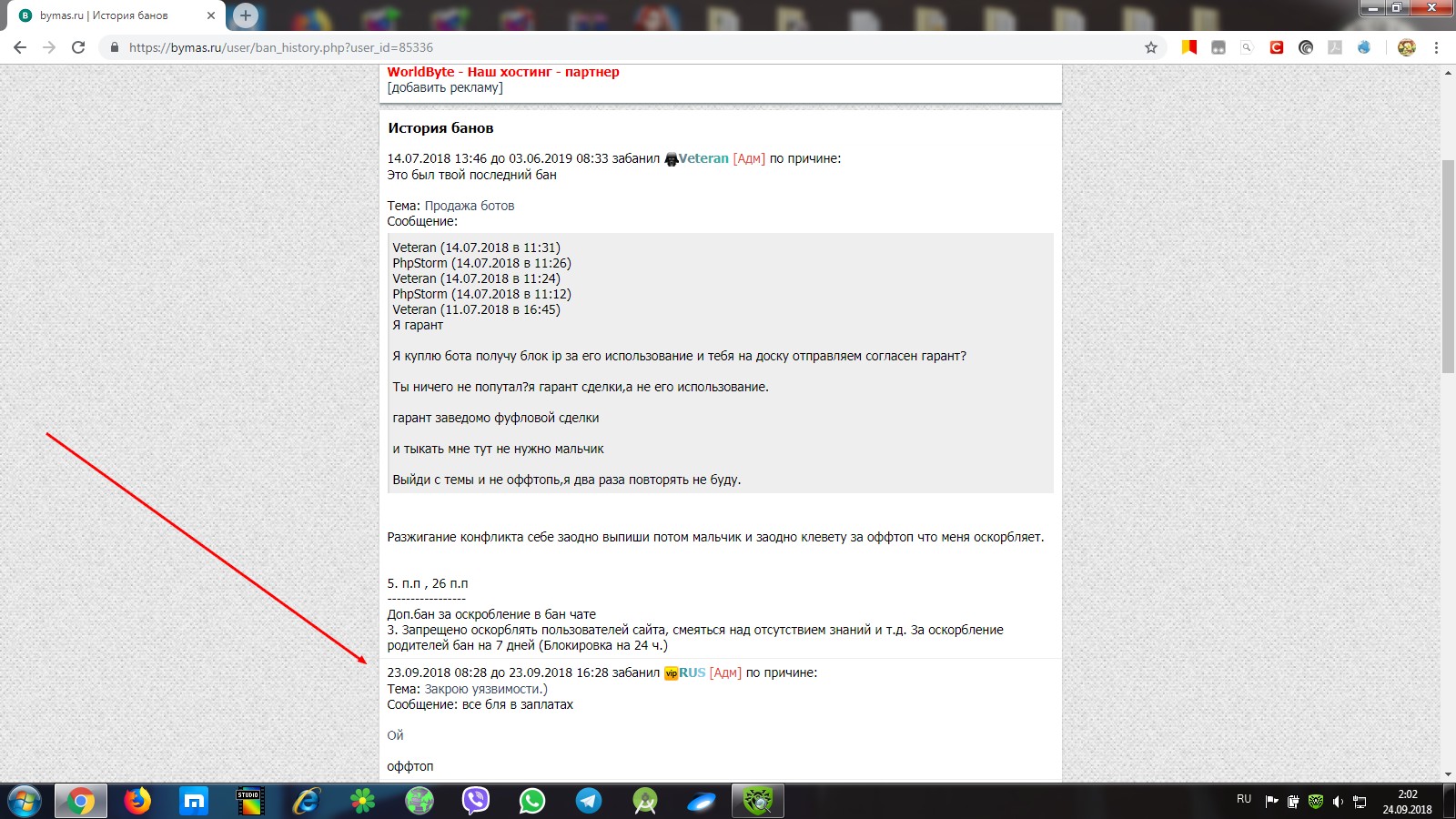 23.09.2018 08:28 до 23.09.2018 16:28 забанил RUS [Адм] по причине:
