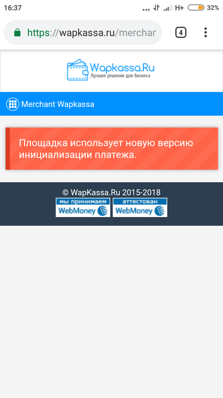 Касса настроена, но когда захожу в покупку пишет Площадка использует новую версию инициализации платежа . где и как это можно исправить