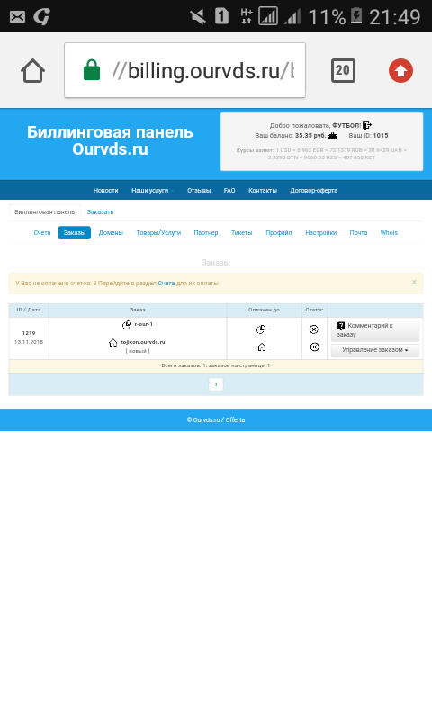 Привет я заказь ресселинга на хостинга ourvds.ru нет менеджер файлов