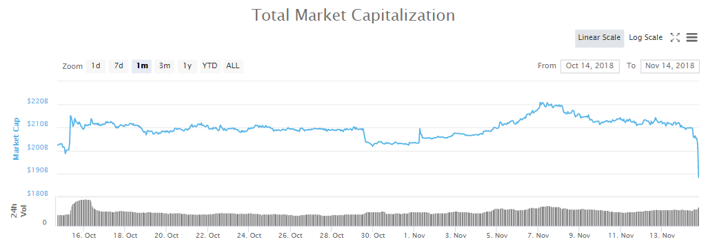Капитализация сегмента за последние часы опустилась на $20 млрд и теперь составляет $188 млрд.