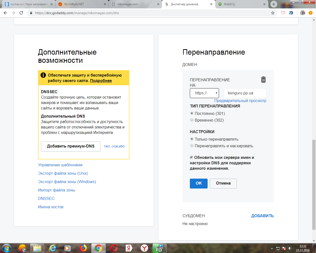 в общем перенаправил домен http://nikomagaz.com на домен https://kenguru.pp.ua но он почему то не работает этот домен не перенаправляется на домен(((