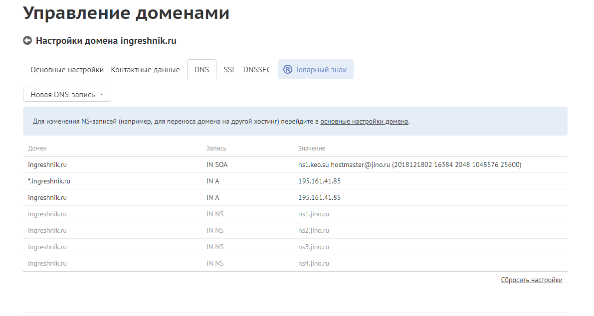 У меня вот такая вот проблема, купил домен в jino.ru Джино далее сделал попытку припорковать у себя на хостинге keo.su, и припорковал. далее при переходе на домен который я купил выдает сайт Джино. ссылка ingreshnik.ru