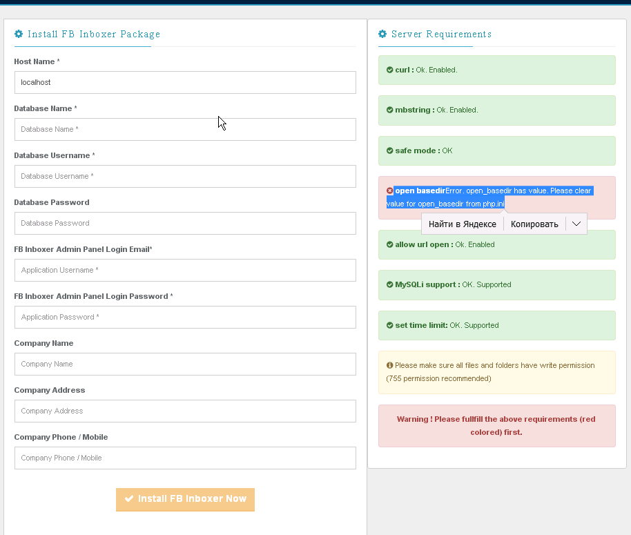 открыть basedirError. open_basedir имеет значение. Пожалуйста, очистите значение для open_basedir из php.ini