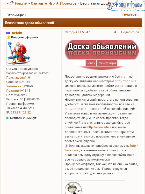 тогда для чего тему создал? Для рекламы есть в верху покупка рекламы. Категория "полезные сайты" чем он полезен? Посещаемость никакая, фрейм не больше.