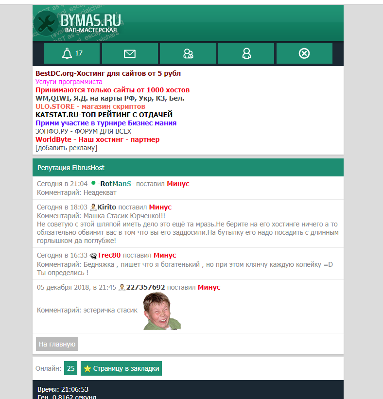 Ув.модераторы,обратите внимание на школьника ElbrusHost который своим неадекватным поведением портит репутацию пользователям.!