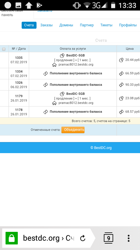 Счета почистили, счета за домен почему то нет. Хотя я его оплатил