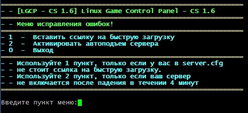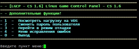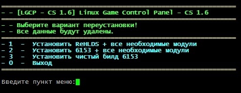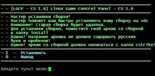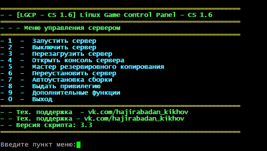 Теперь рассмотрим мой скрипт по авто-установке, настройке и управлению серверами CS 1.6 на VDS: LGCP - CS 1.6.
