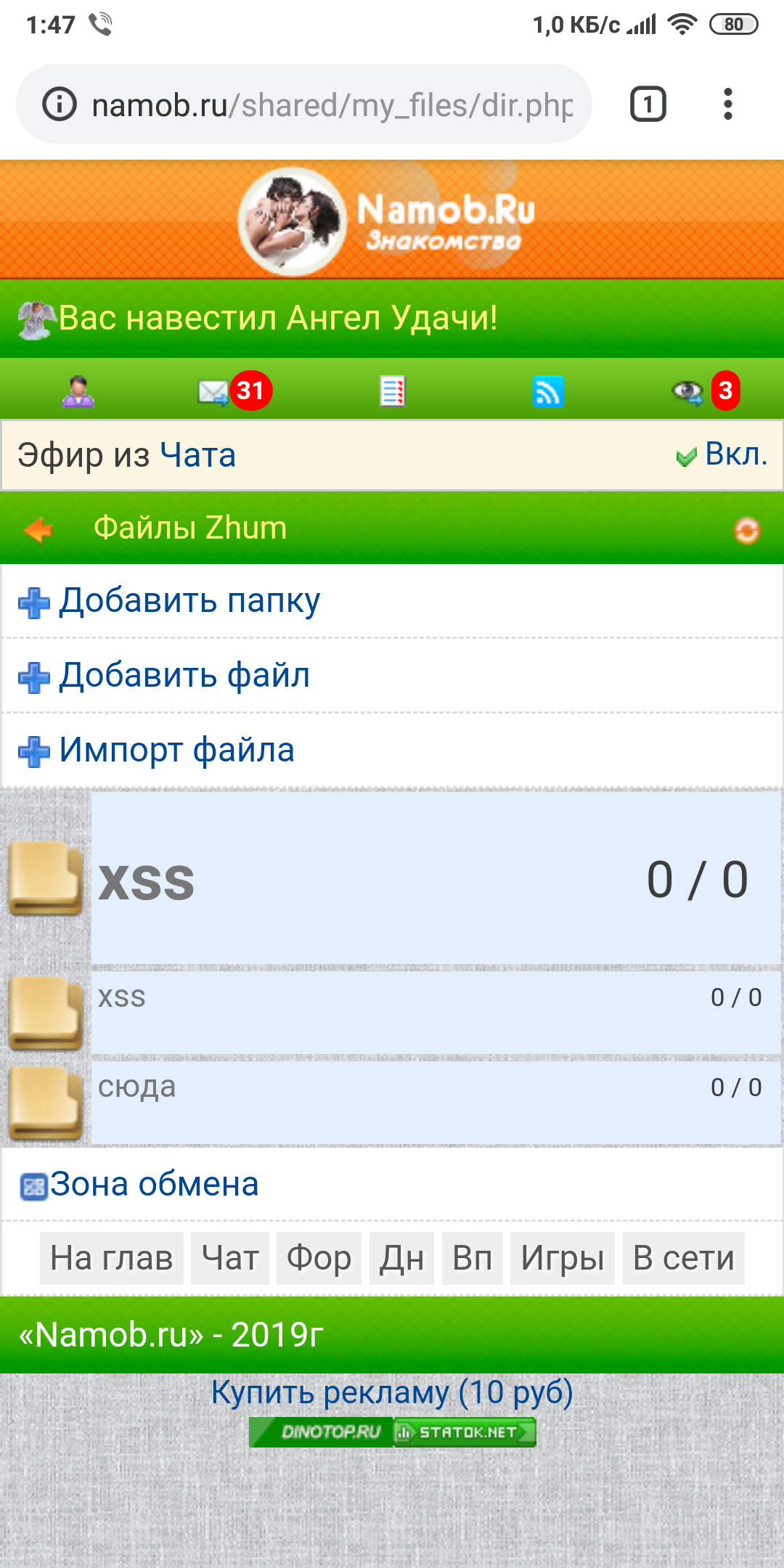 Твоя папка XSS ниче не дает лол