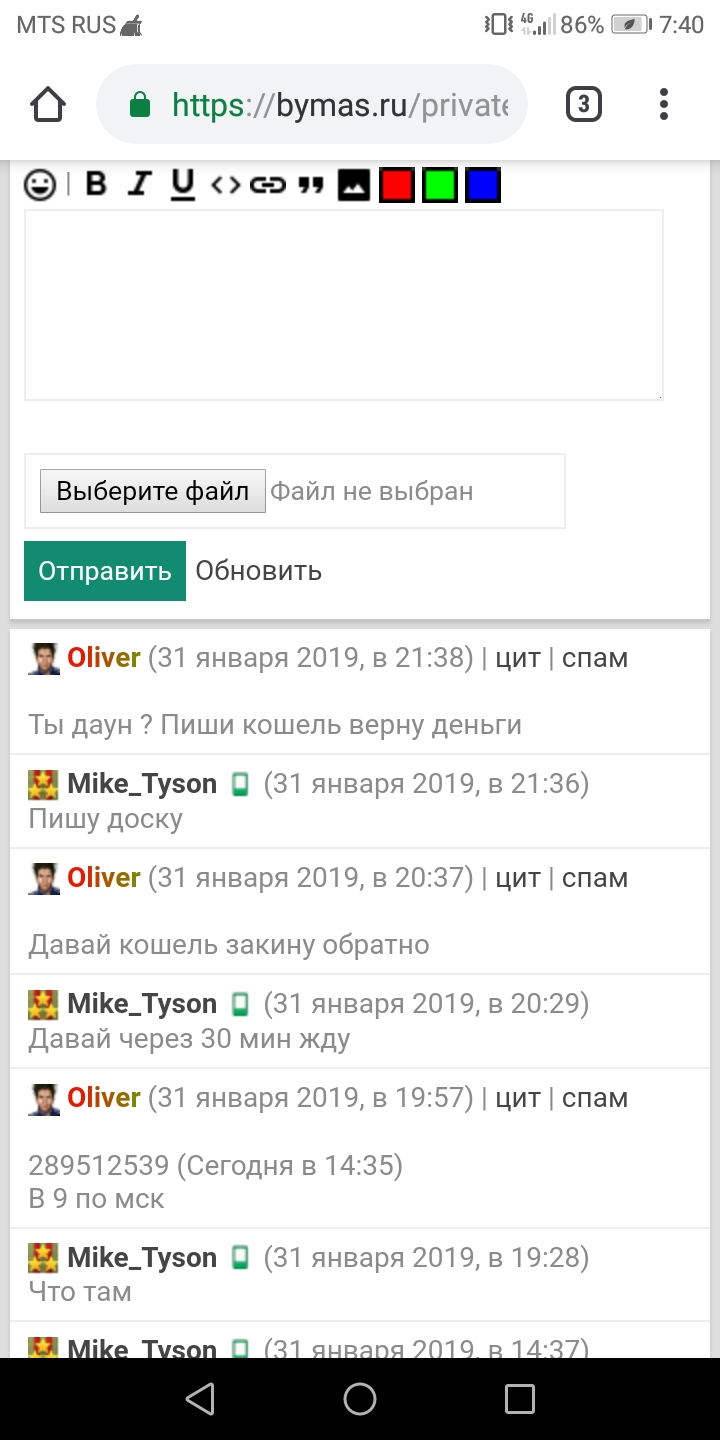 Суть причины пробовал скрипт он бизнесмен я скинул ему 120 р он сказал что в 00.00 кинет скрипт и не кинул. Ждал день не скинул потом он выложил его в магаз я пополнил ак и купил его там а которые скидовал ему 120 р он сказал что вернёт и не ворачивал потом написал что не вернёт.