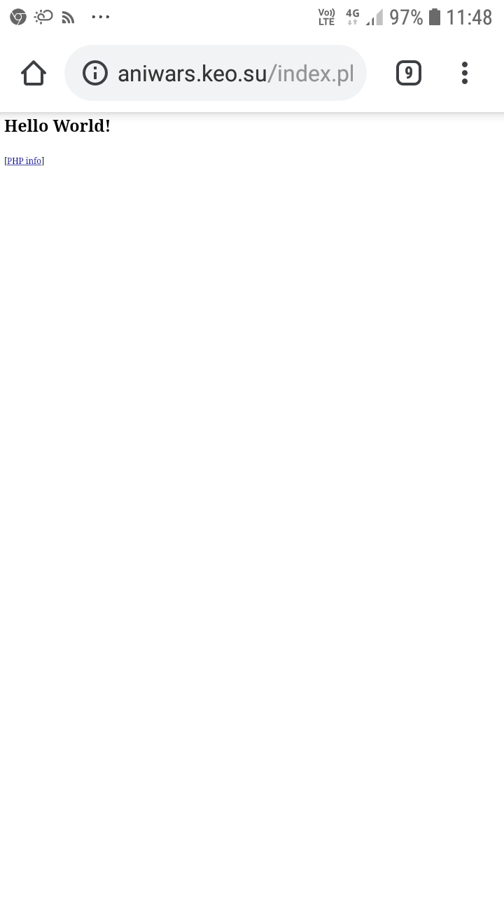 echo '<h1>Hello World!</h1><br /> [<a href="index.php?phpinfo">PHP info</a>]';