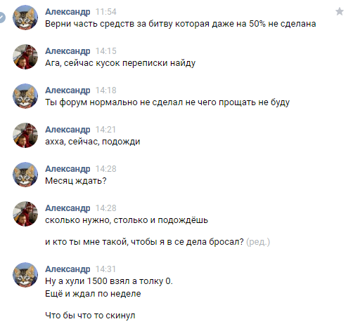 Но при условии что человек делает добросовестно. Я многим сверх платил. И плачу. Всегда пишу что если что доплачу!!! НО ТЫ ОТНЕСЯ КАК ЧЕРТ КО МНЕ!