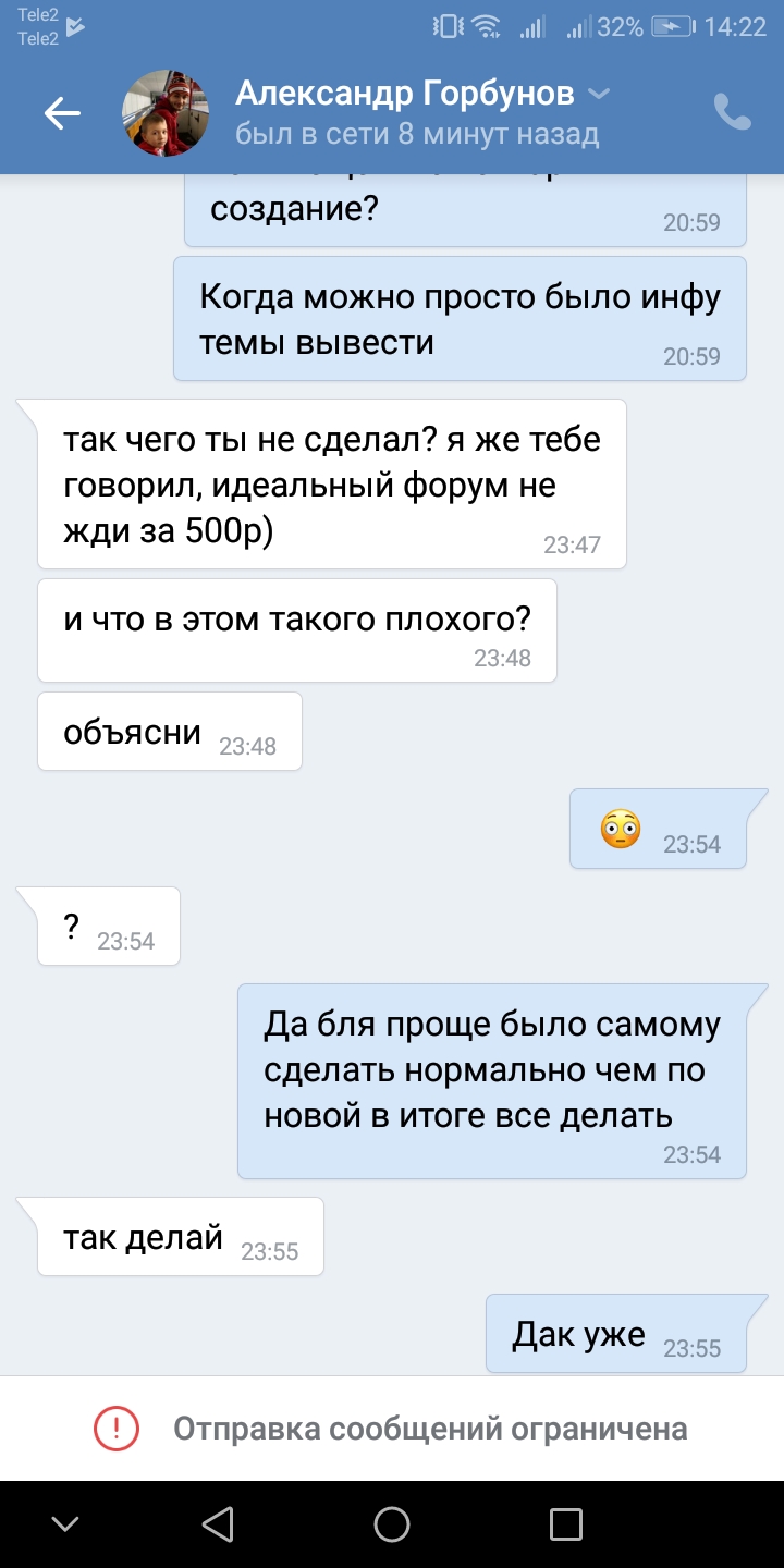 И так просил вернуть 500.руб за то что я отказался от его работы. Так как после того как он сделал форум я не стал ему их прощать.