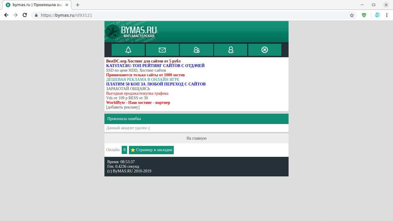 удалённый аккаунт