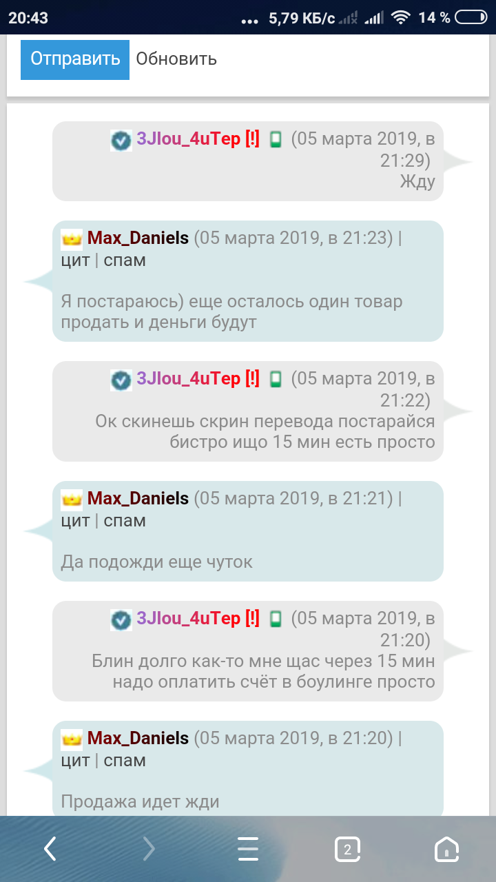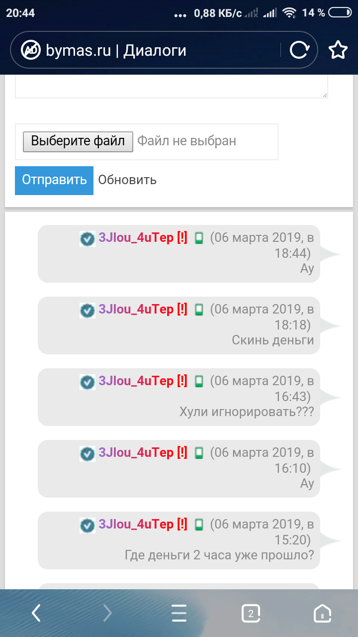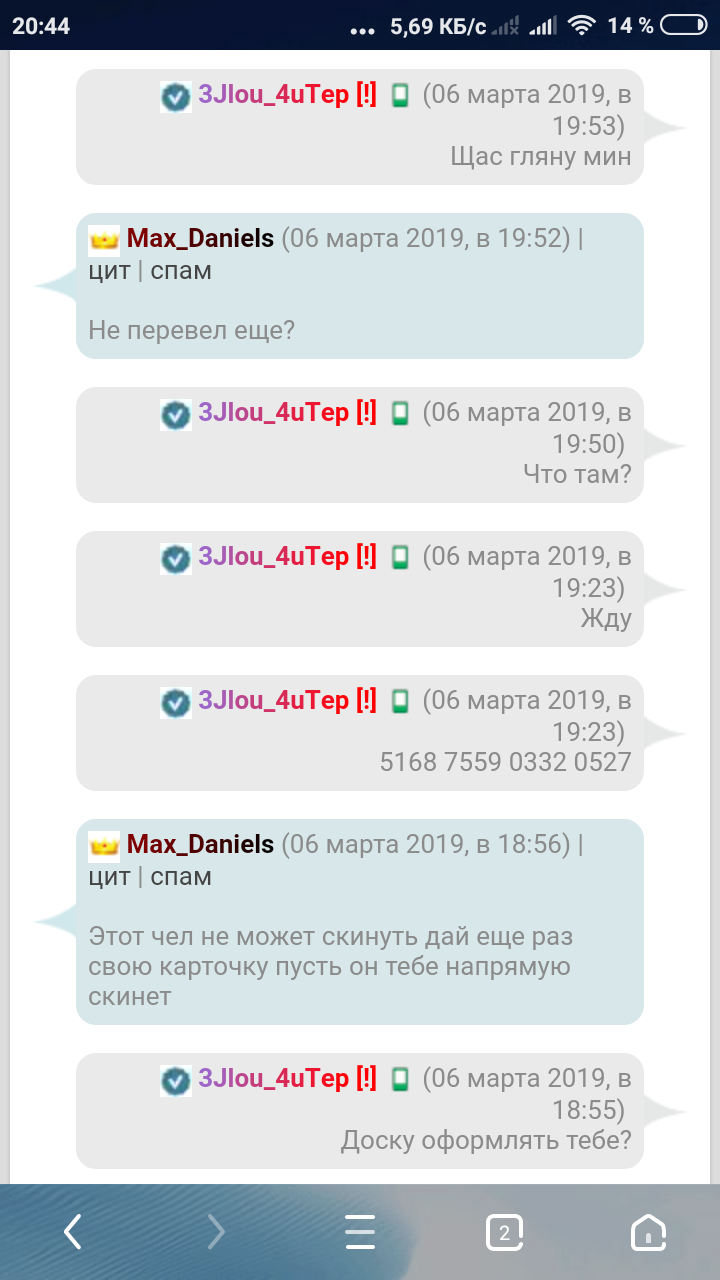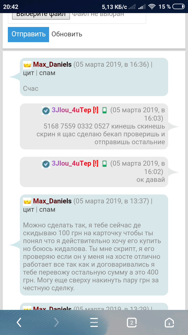 Он скинул 100грн на картку приват24 после чего я дал двиг, БД и домен он должен был скинуть 400грн после проверки он сказал типа пользователь скинет я скинет мне, но в итоге не скинул денег!