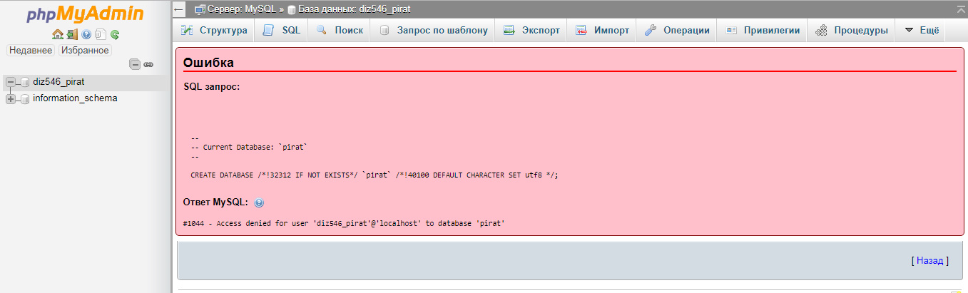 Sovet , вот видишь внизу написано создать БАЗУ ДАННЫХ pirat если её нет и ты этот файл заливаешь в БАЗУ ДАННЫХ