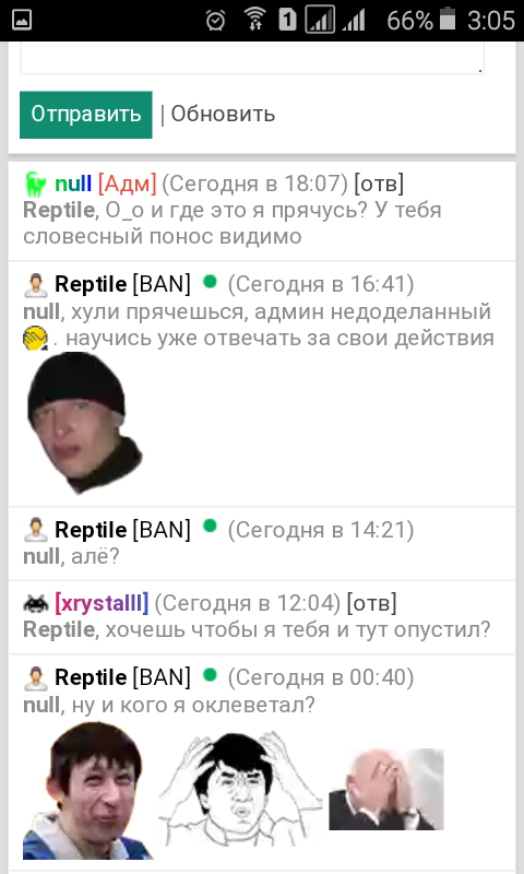 Неадекватный, обиженный и опущенный админ не отвечает за свои действия, смотрим скрины
