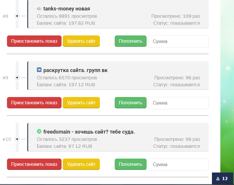 Всем привет. предлагаю раскрутить свой сайт очень дешево. переходим на этот сайт и покупаем ссылочку. за один просмотр сайта от 0.02 копейки. очень дешево а люди идут. за сегодня уже 45 человек и все просмотрели уже имеющийся сайты. могу для теста по рублю выдать что-бы решить продвигаться дальше на нем или нет.