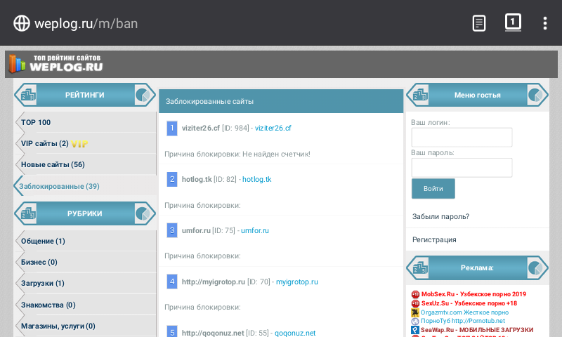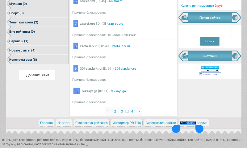 Первым делом посетил раздел "Заблокированные", параллельно с этим открыв карту сайта, дай думаю, проверю, а указаны ли страницы статистики по заблокированным площадкам в карте сайта.