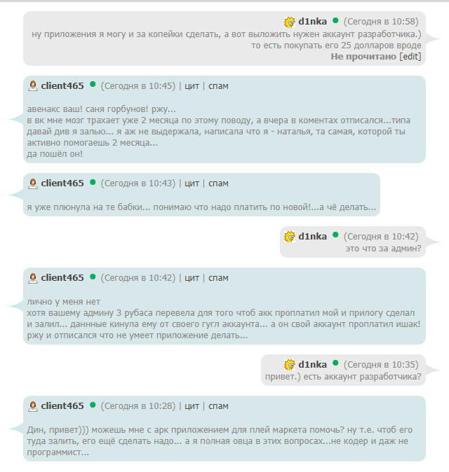 https://bym.guru/id96487 данная девушка обратилась ко мне за просьбой написать ей клиент под игру и помочь выложить ее в play market, я ей написала в итоге, она осталась довольна.