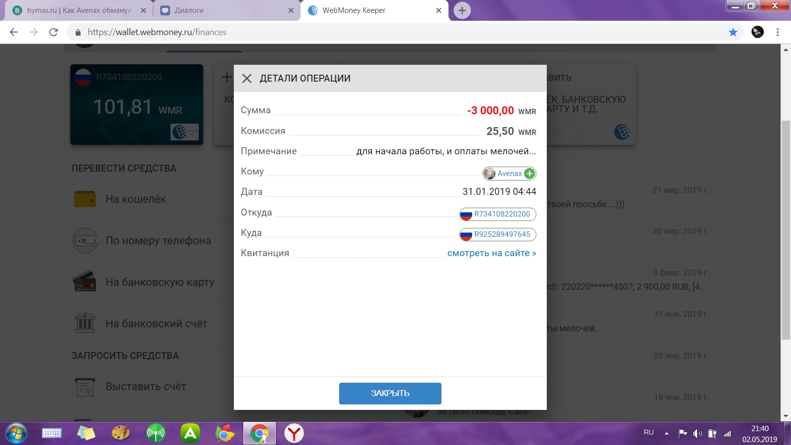 это было аж 31 января! и я ему выслала деньги! чек предоставила!