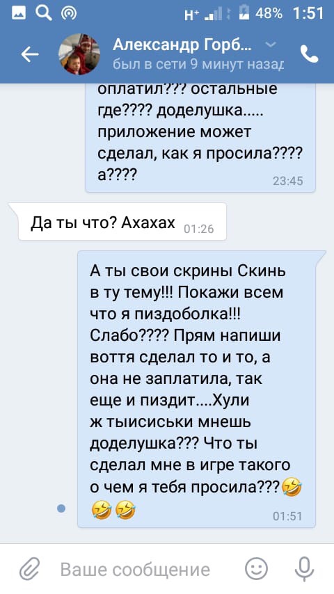 Попросили в тему кинуть, девушку которую он кинул на 3к. и забанил тут в итоге и в вк в чс ее кинул.Сказала пишет претензию на вмид вместе с блокировкой.