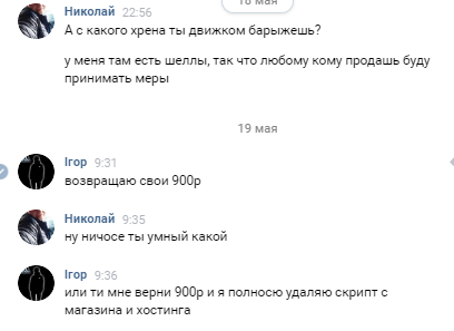 По твоей логике, если человек со статусом мошенник, покупает проект, отправляет тебе деньги а ты ему фигу в ответ, то это все нормально, он же мошенник.