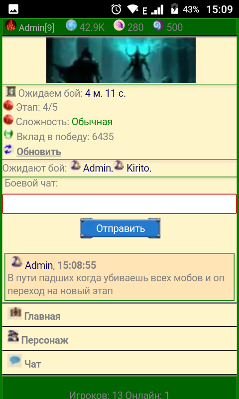 В зависимости от сложности боя за победу дают шмот и редкие руна за них шмот качать. По завершению боя Боевой чат и все логи чистятся автоматически дабы не засорять бд