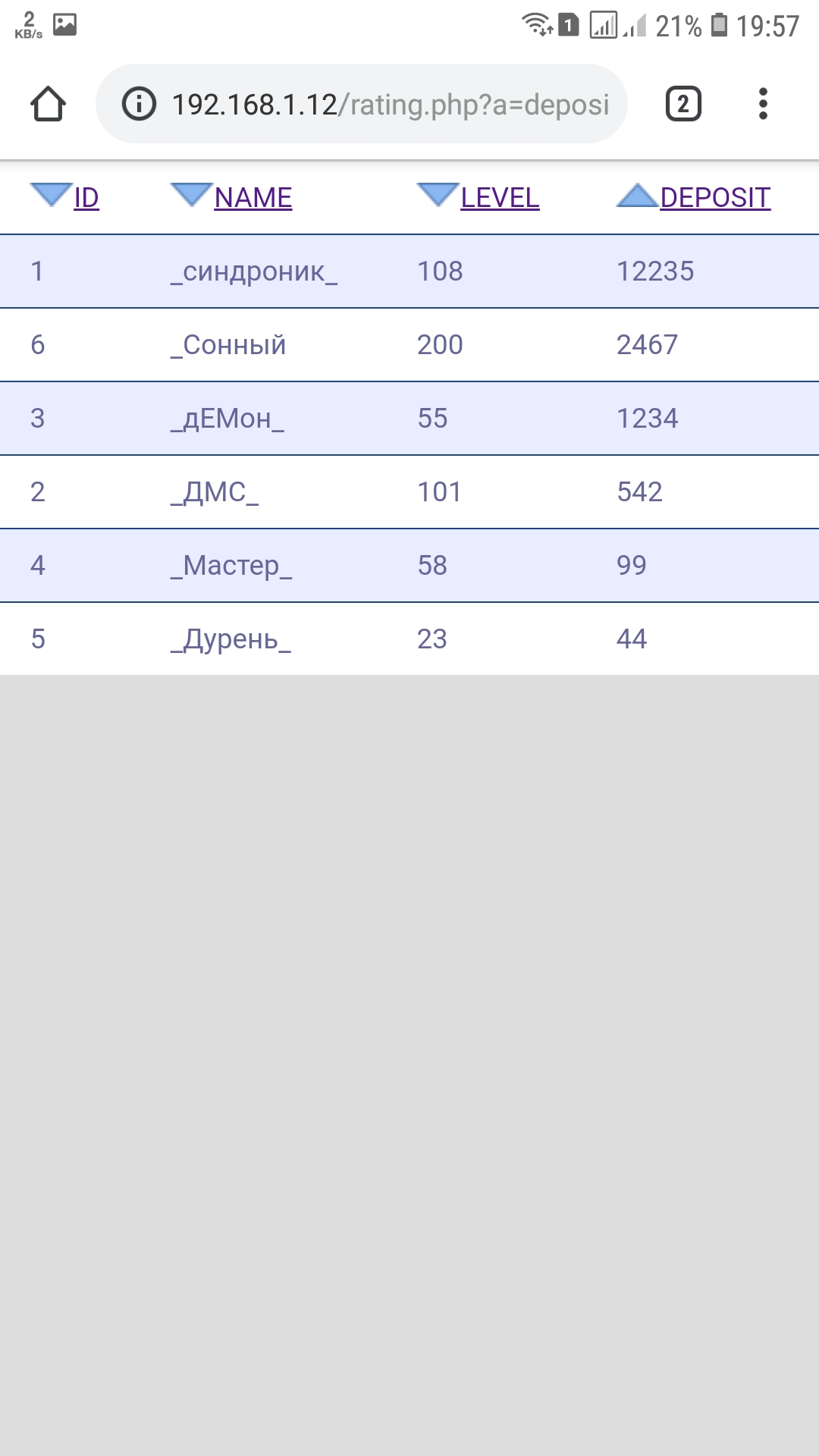$sql = "SELECT id, name, level, deposit FROM rating ORDER BY $a $sort";