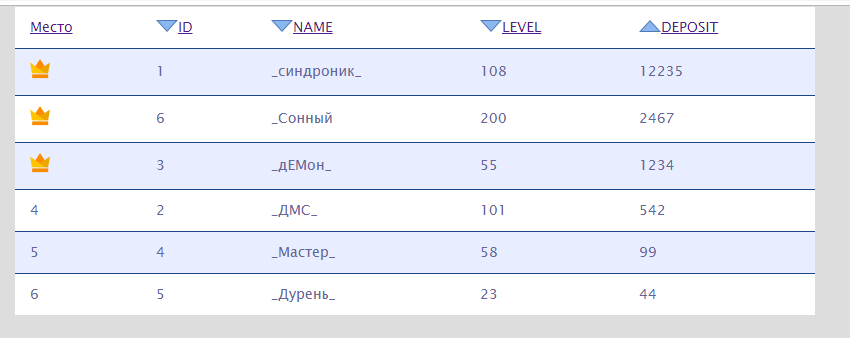 Всем привет, суть вопроса в том что нужно в таблице сделать нумерацию мест(первые 3 места с картинками 1.png, 2.png, 3.png остальные просто цифрами в отсортированной таблице по asc desc... Гуглил ничего внятного и нужного мне не нашел...