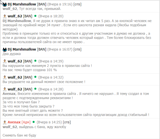 3. Данный человек не знает правила сайта ! (Это утверждение чуть ниже доказательства) , блокирует пользователей сайта без причины (чуть ниже доказательства)