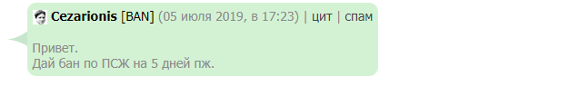 как я тебе напишу если нельзя писать, а только выбрать причину, при обычном бане