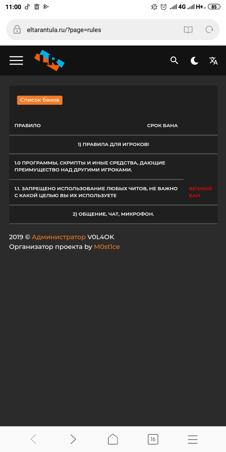 <th class="text-left">1.1. Запрещено использование любых читов, не важно с какой целью вы их используете</th>