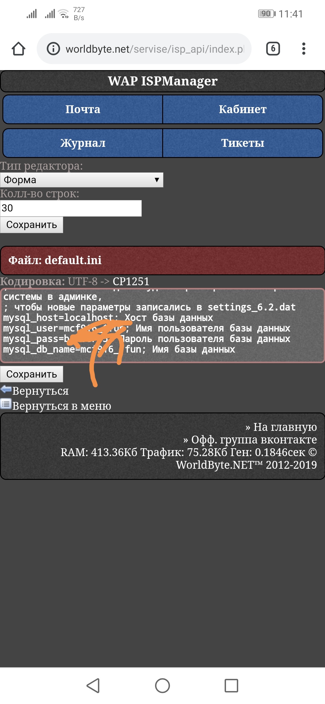 Бродяга , бд прописал норм, но все равно показывает тех работу