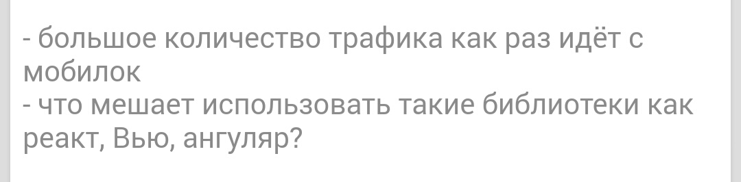 - что мешает использовать такие библиотеки как реакт, Вью, ангуляр?