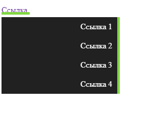 Хочу сделать чтобы ссылка была над ссылками что выпадают по правому краю а не слева, хз как сделать