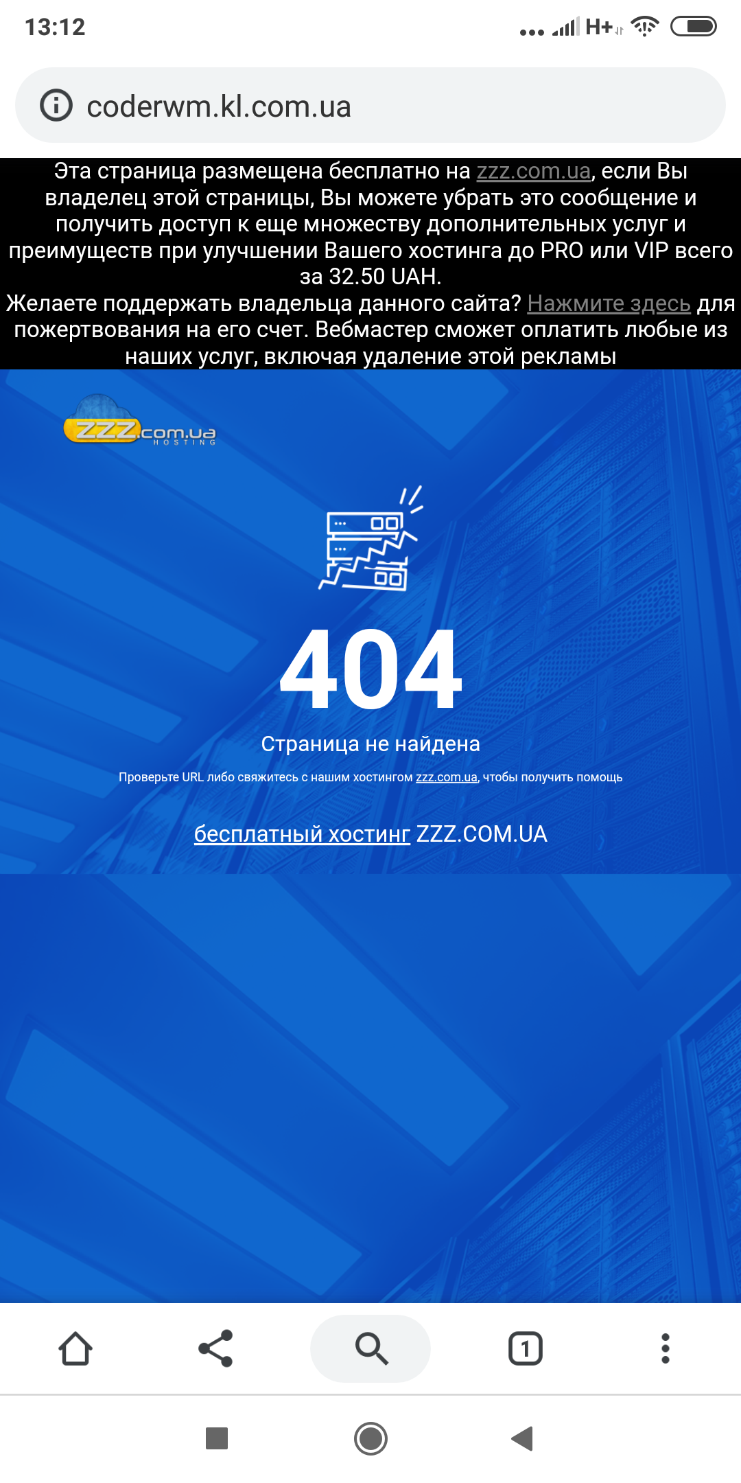 Проверьте URL либо свяжитесь с нашим хостингом zzz.com.ua, чтобы получить помощь