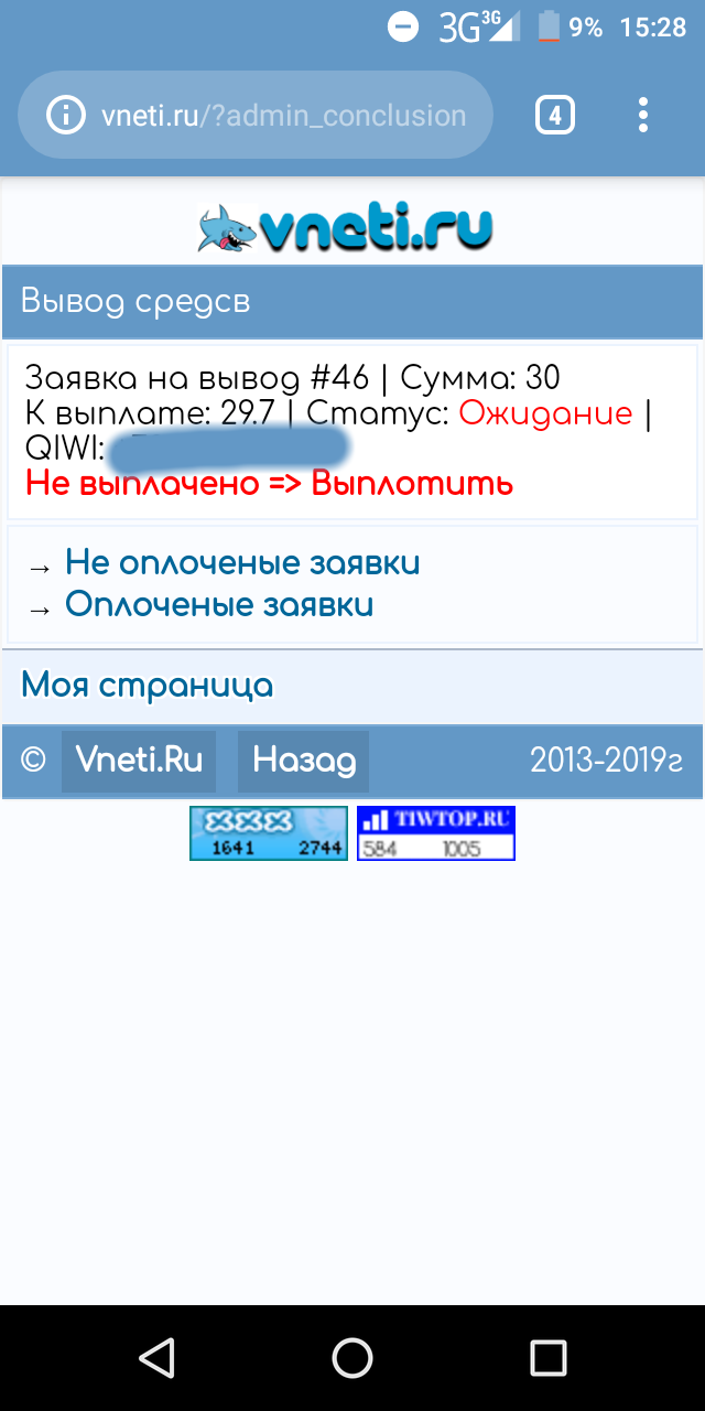 крот , Да хоть когда квитанция число. Ты вывод только сделал. Сначала тему создал потом вывод заказал)))