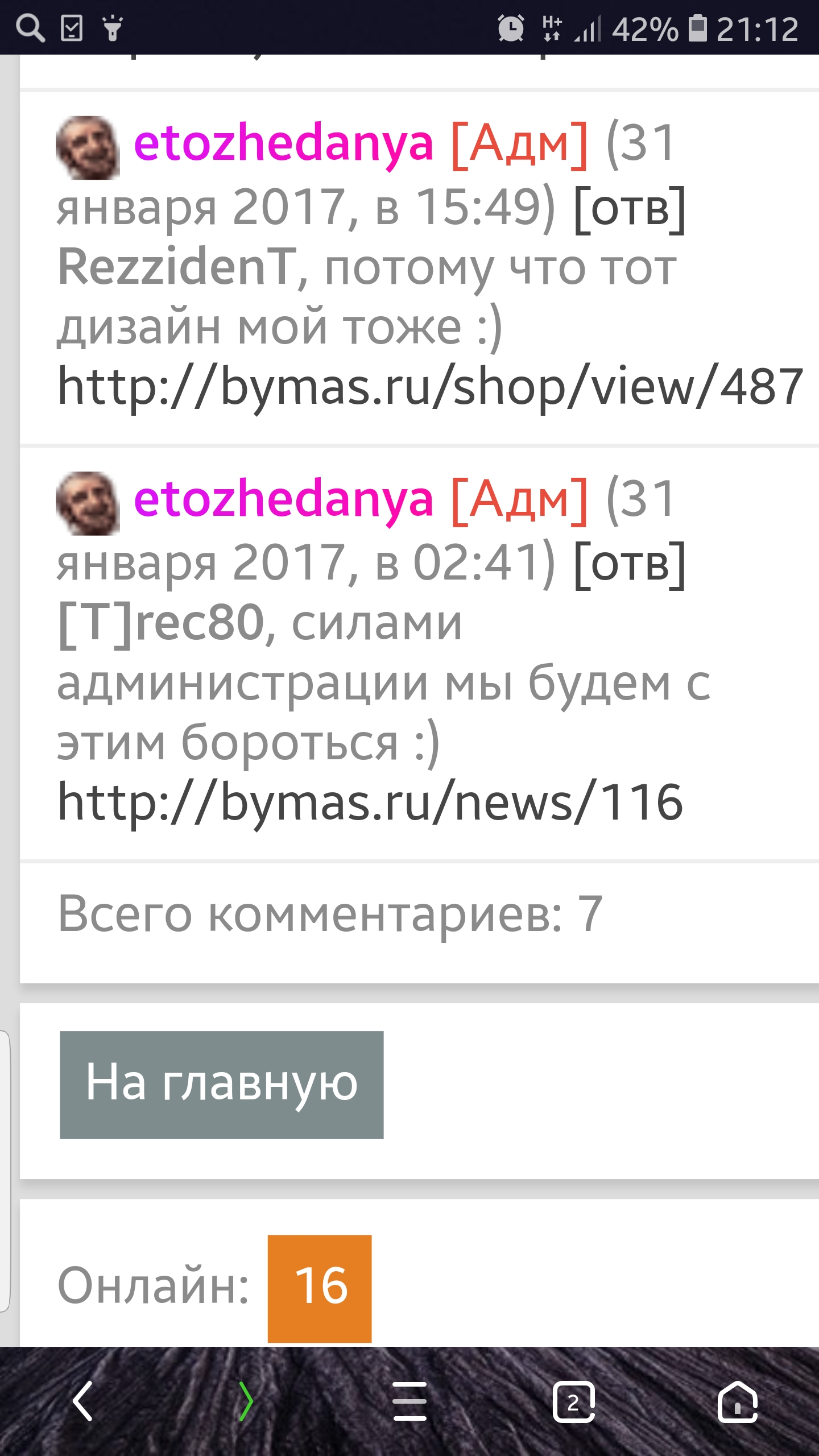 Какой из админов Бумаса 31 января 2017 года оставил такой комментарий - "силами администрации мы будем с этим бороться :)" ?
