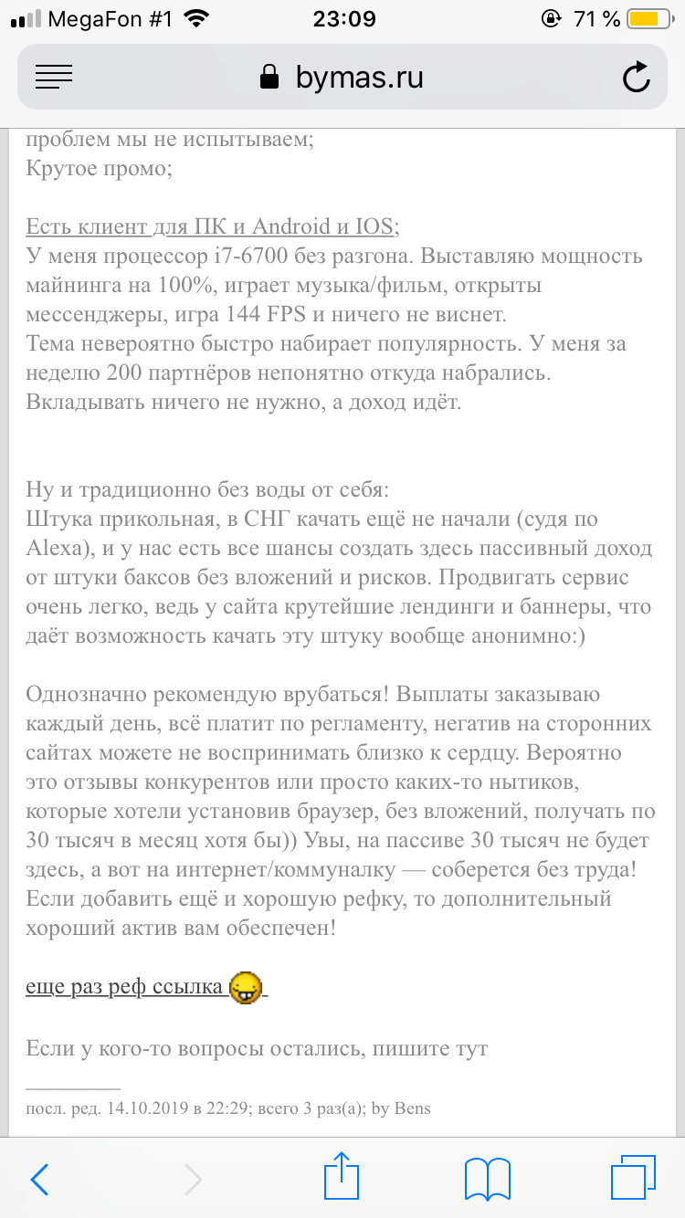 Однозначно рекомендую врубаться! Выплаты заказываю каждый день, всё платит по регламенту, негатив на сторонних сайтах можете не воспринимать близко к сердцу. Вероятно это отзывы конкурентов или просто каких-то нытиков, которые хотели установив браузер, без вложений, получать по 30 тысяч в месяц хотя бы)) Увы, на пассиве 30 тысяч не будет здесь, а вот на интернет/коммуналку — соберется без труда! Если добавить ещё и хорошую рефку, то дополнительный хороший актив вам обеспечен!