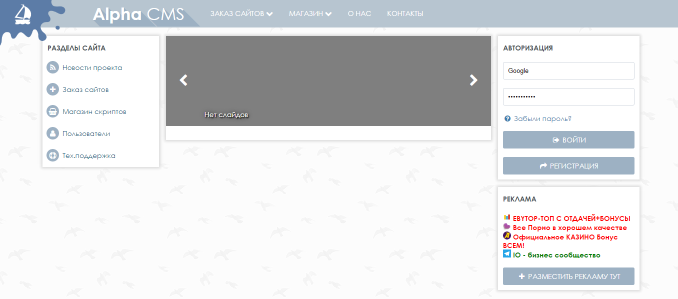 Дак давай и корпоративный сайт написанный на твоей cms посмотрим.