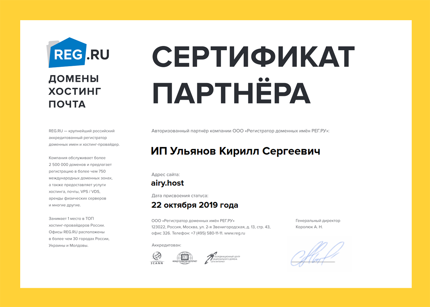 Мы являемся авторизованным партнером компании ООО "Регистратор доменных имен РЕГ.РУ", а это значит, что у нас безопасно регистрировать домены.