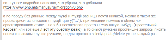 SQL то да, не менялся, но вот в php 5 сам драйвер mysql обьявлен устаревшим, а в php 7 он вообще недоступен, вот и для перехода на php7 надо юзать mysqli или pdoзаходим сюда https://www.php.net/manual/ru/migration70.removed-exts-sapis.phpи что видим? угу, теперь старые mysql_query(), и прочее что связано с mysql_* больше не работает))) ты бы хоть удосужился уточнить)))