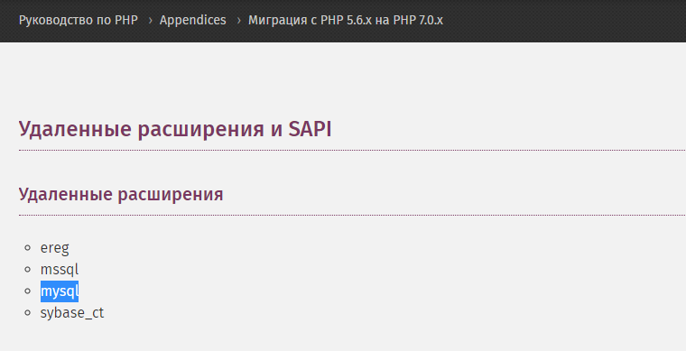 заходим сюда https://www.php.net/manual/ru/migration70.removed-exts-sapis.php
